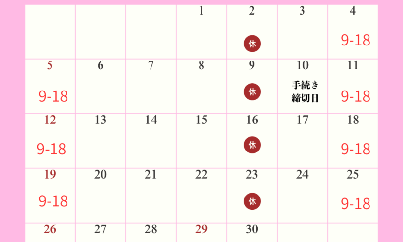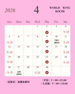4月の営業スケジュールになります! ご確認お願いします♪